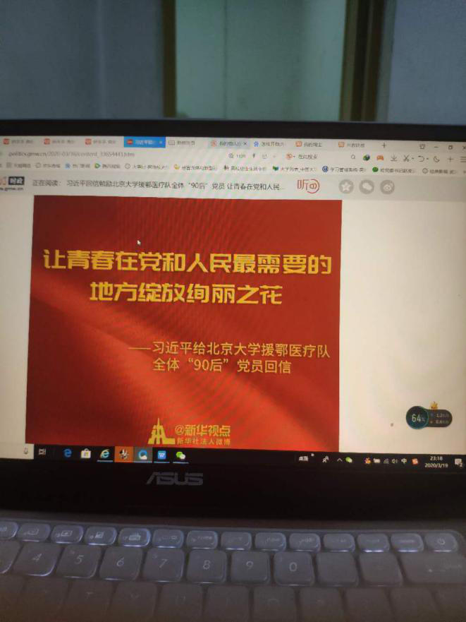 诚然,人生没有一帆风顺,艰苦的奋斗会成为常态,但是人活着的价值正是如此,青春的路上,只有经过汗水浇灌,一路才可以长出绚丽的花朵。作为一名年轻的高校工作者,我十分羡慕那些冲向战场的援鄂医疗队““90后””党员们,因为当他们回忆这段岁月的时候,他们会骄傲自豪,这是宝贵的人生记忆。