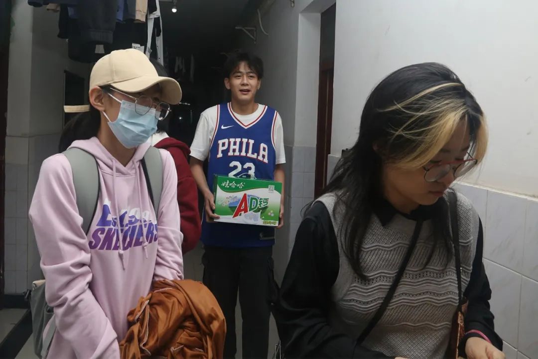 活动接近尾声时,一行人来到东十四宿舍。此时,迎新晚会已经进入了高潮阶段,走廊里不时传出同学们欢呼赞叹的声音。而当抱着礼物的活动吉祥物小熊突然出现在各个宿舍时,同学们先是一愣,随即发出惊喜尖叫,411寝室的四名女生甚至直接冲上去抱住了小熊。