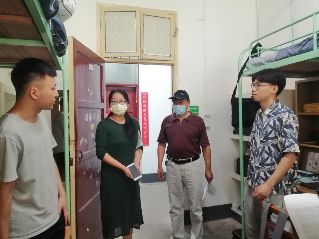 罗书记对已经到来的学生表示欢迎,他细心地检查了新生宿舍中门锁是否完好,确保不留安全隐患。