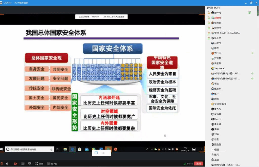 4月16日下午5点40分,开展了以“国家安全教育日”为主题的班会。由于当下疫情形势,本次班会以“线上”的形式开展。