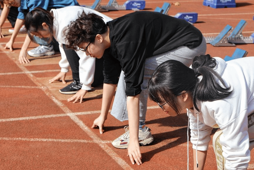 400米是对运动员速度和耐力的双重考验,尤其注重对跑步节奏和步伐频率的把握,在跑步过程中同学们需要及时调整呼吸,以稳定的节奏去跑。比赛枪响,一声令下,四位同学在各自的赛道上全力奔跑。阳光照耀下她们的汗水晶莹剔透,衣服拉链散着也无暇顾及,心中只有一个目标就是奔向终点,于是每一次迈步都格外坚定,每一次摆臂都拼尽全力。