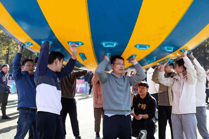 运转乾坤项目是今年运动会的新创项目,老师们都没有经验。面对“新玩意”,团体合作是他们对此次比赛最深刻的感受。陈科谈到:“这个项目注重力量和速度的协调,因此需要一定组织性。集体项目考验的就是大家的团队配合,靠集体的智慧和协作才能完成。”此外,程秀莉说到老师们基本每年都会参加教工组比赛,感受集体氛围。此次项目大家虽然都没有练习,但凭借团队的配合协作,教师代表团还是顺利完成了比赛,并且获得了13秒12的好成绩。