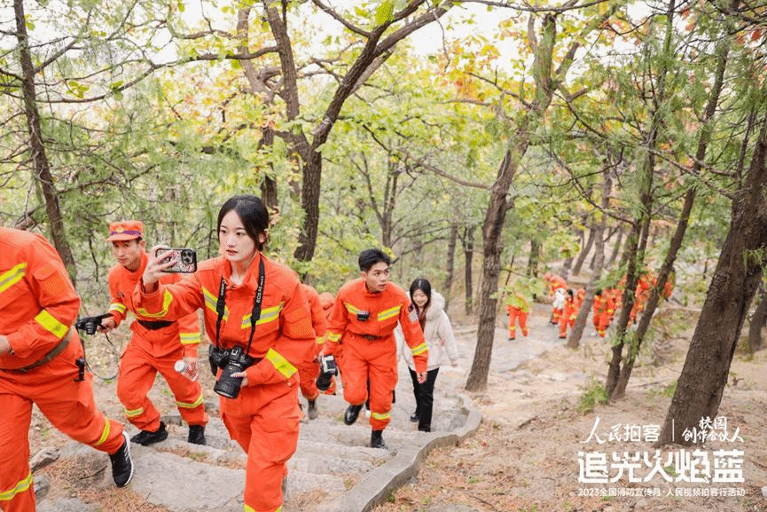 2023年全国消防宣传月到来之际,我院学生王佳琪和人工智能教育学部学生马雨晴作为“校园创作合伙人”受邀参与“人民拍客追光火焰蓝”拍客行活动,奔赴北京香山,深度体验消防员的训练和生活,感受消防文化、学习消防知识,致敬“火焰蓝”。