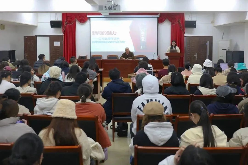 华新在线讯(见习记者 吴雨宸)11月19日,为加强马克思主义新闻观教育,培养学院学子新闻理想,湖北电视台专题部副主任景高地作为特邀嘉宾,为全体本科生新生做了“新闻的魅力”相关主题讲座。讲座由我院党委副书记程秀莉主持。