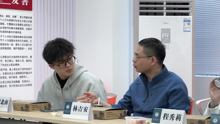 学生代表罗瑞临率先发言,提出“对人文社科学生而言,读书是否就是唯一的研究路径”的疑问。班主任陈俊峰对此作出回答:“读书确实是重要的知识来源,但人文学科同样需要实践。学与做相结合,才能更好地掌握新闻传播学的精髓。”