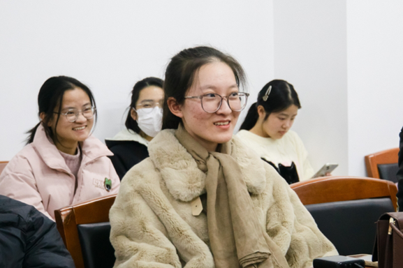(孙惠瑄认真倾听学姐作经验分享)