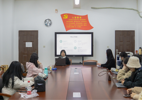 班会开始前,会议室外是凛冽的寒风,会议室内充满同学们的欢声笑语。欧阳静美向同学们表示了简短的问候,仍记第一次班会时大家的拘谨与陌生,到现在的相谈甚欢,希望同学们能够在班会中放松心情,畅所欲言,不要将班会当做一个形式化的流程,而要让班会的内容能够真正帮助到大家,为大学生活提供有益的指导。
