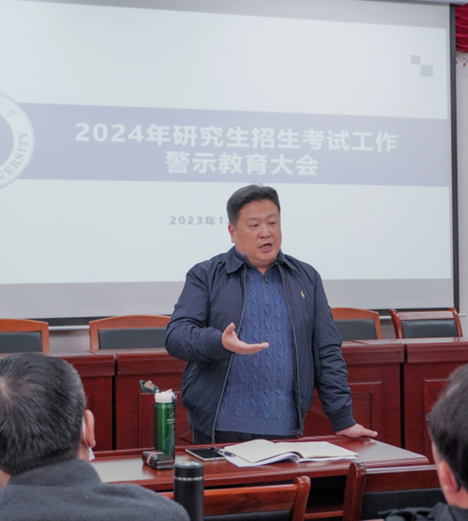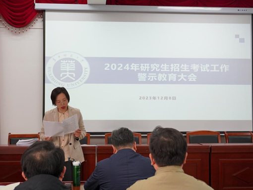 周莉向参会老师们传达学校的相关工作要求,剖析了近年来研究生招生工作违规案例和相关处罚,周莉表示,参加研究生招生考试工作的教职工要提高政治站位,以案为鉴、举一反三,慎而又慎、细而又细、实而又实做好各方面工作,坚决杜高质量完成研究生招生考试工作。