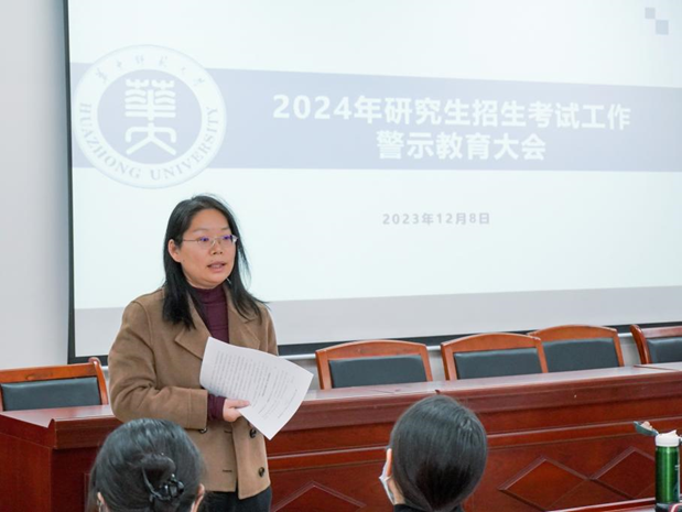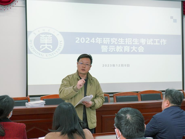 华新在线讯(通讯员 孙艺)为贯彻落实教育部近期召开的2024年全国研究生招生考试安全工作会议精神、确保我院研究生招生考试安全,以及为推动我院本科教学高质量发展、平稳度过本学期关键期,12月8日,我院在学术报告厅召开2024年硕士研究生招生考试工作警示教育大会暨本科教育教学工作会议。我院院长万忆、党委副书记程秀莉、科研副院长周莉、教学副院长陈科及学院教师们参会,会议由学院院长万忆主持。