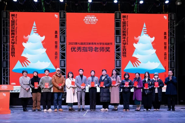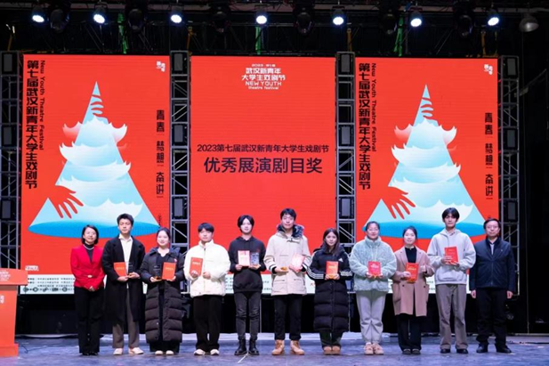 颁奖典礼上,第七届武汉新青年大学生戏剧节“优秀组织奖”、“优秀指导老师奖”、“优秀展演剧目奖”、“最佳原创剧本奖”、“最佳展演剧目奖”依次揭晓。