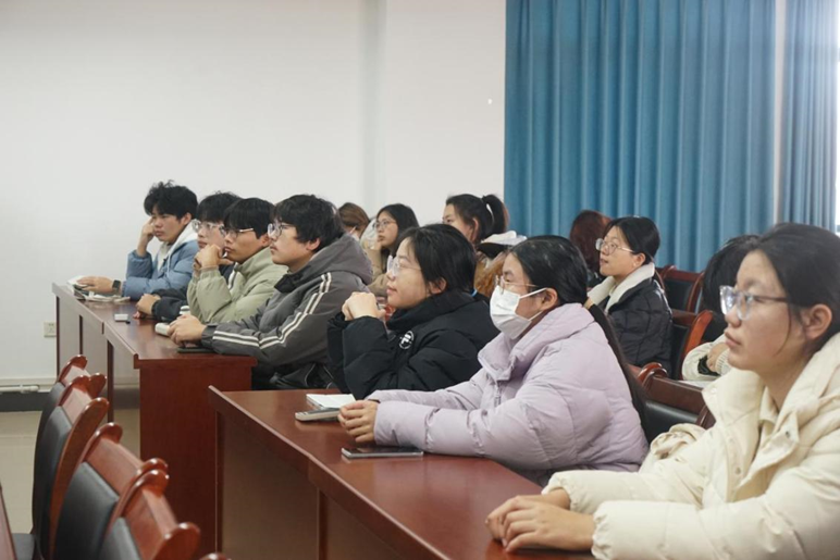 随后,刘老师结合数据介绍了目前学院各专业的升学、就业情况。这一内容涉及到大家未来的长远发展,同学们反响热烈,纷纷对毕业生去向的统计数据、图表拍照记录。刘老师最后强调,选课和专业固然重要,但并不能决定一切,在以后的升学和工作中,除了本专业的知识技能外,我们还需要掌握多种知识技能,全面发展,所以提升个人的综合素养和能力才是我们在大学生涯中学习的最终目标。