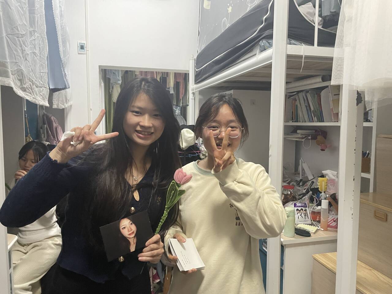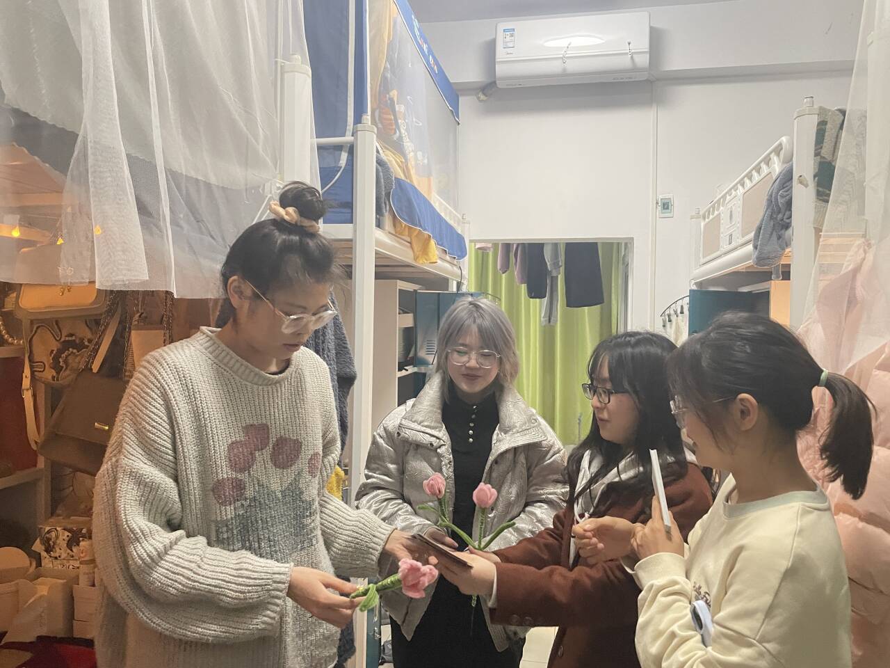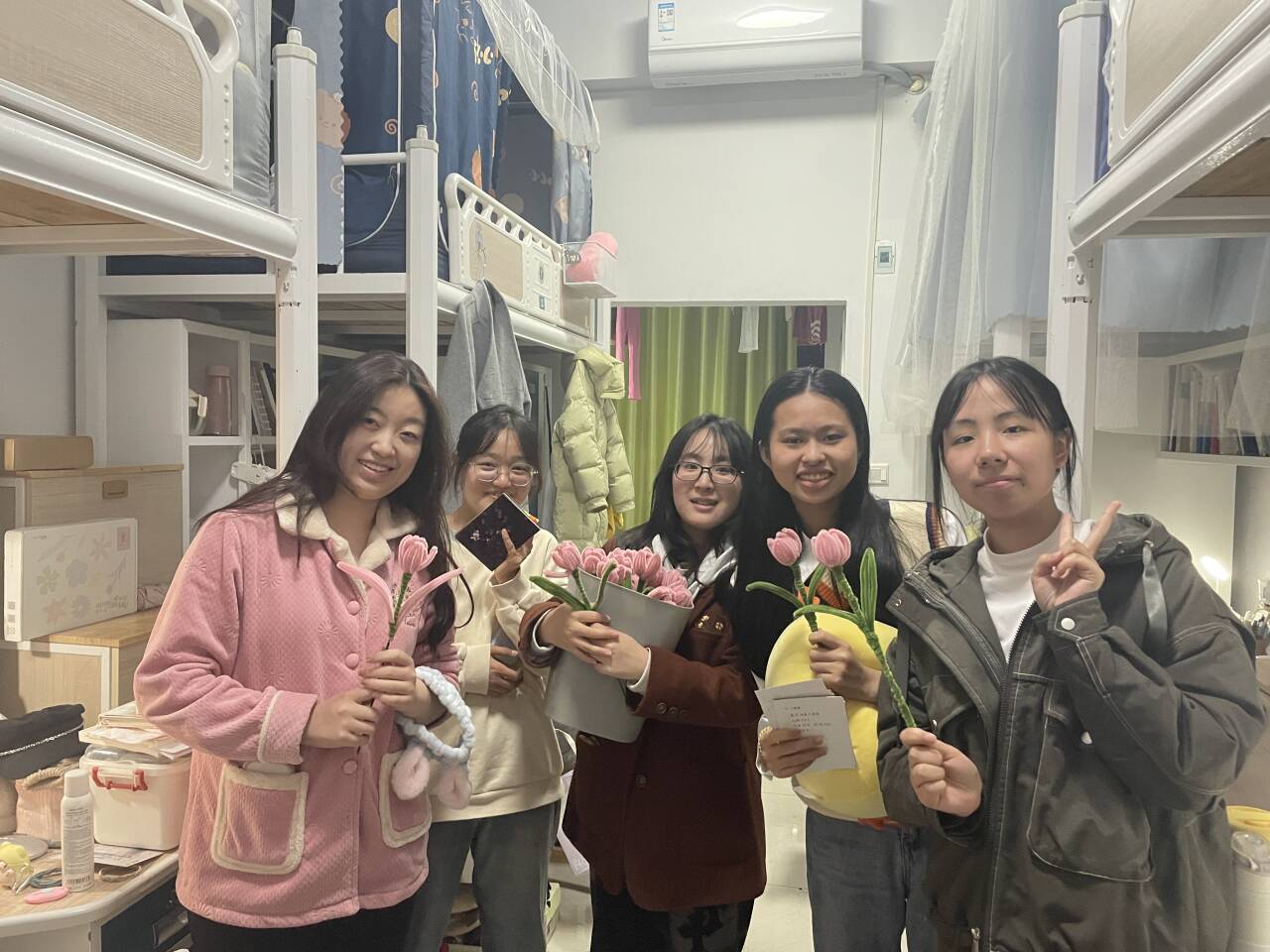 在晚上,精心制作的扭扭花和明信片一一送到了女生们的手中,收到礼物的女同学们脸上洋溢出灿烂的笑容,每一份扭扭花和明信片都成为了共同回忆的载体、见证着深厚情谊的独特印记。