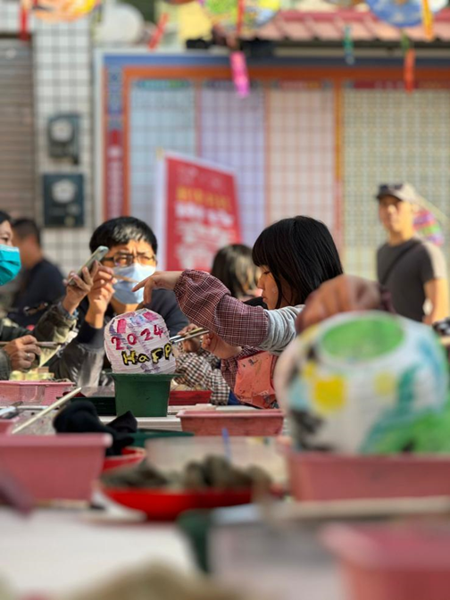 率先作分享的是来自中国台湾的蔡秉谚同学。寒假期间,他回到老家台南市度过了一个传统文化氛围浓厚的年。大街上是熙熙攘攘的人群,灯会集市从早到晚都热闹非凡。为迎接2024甲辰龙年,男女老少齐上阵,参与绘制孔明灯、品尝糖画、制作花灯等活动。