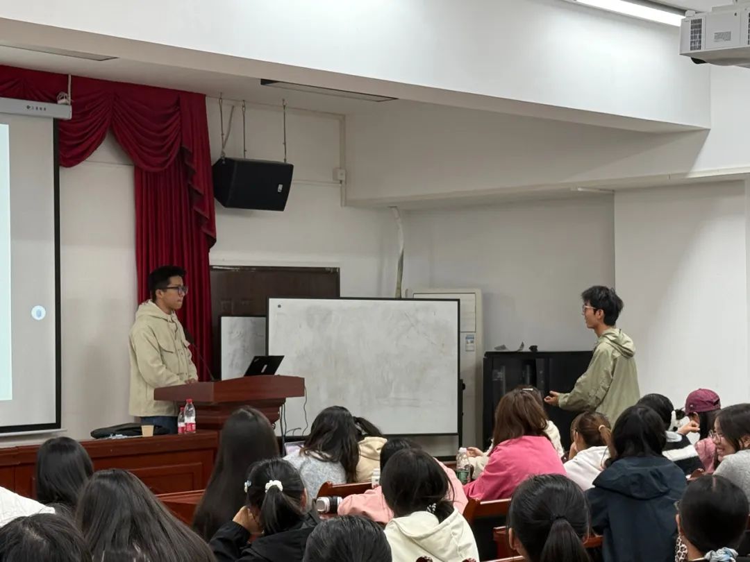 最后,白宇菲以“我们的船只单向行驶”为主题,从打破信息差和舟载梦想、独立远方两个方面来分享经验。她期望学弟学妹们要有兴趣、勇气和毅力三种品质以及培养联想思考、总结反思、看书的三种习惯。按自己的节奏,博观而约取,厚积而薄发,抓住当下,专注自己,让我们的小船行稳致远。