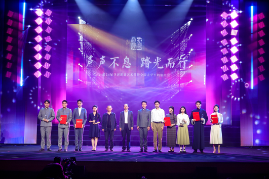 华新在线讯(通讯员张瑜轩)11月16日晚,第26届齐越朗诵艺术节暨全国大学生朗诵大会在中国传媒大学大礼堂落下帷幕。我院播音与主持艺术专业学生阮婕安妮、张瑜轩、卢怡航、刘天心的作品《最后的家书》荣获“评委会荣誉奖”,指导教师白嗣新、徐阳荣获“优秀指导教师奖”,我校荣获“优秀组织奖”。