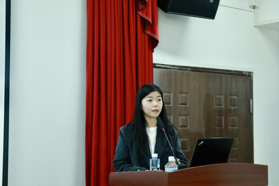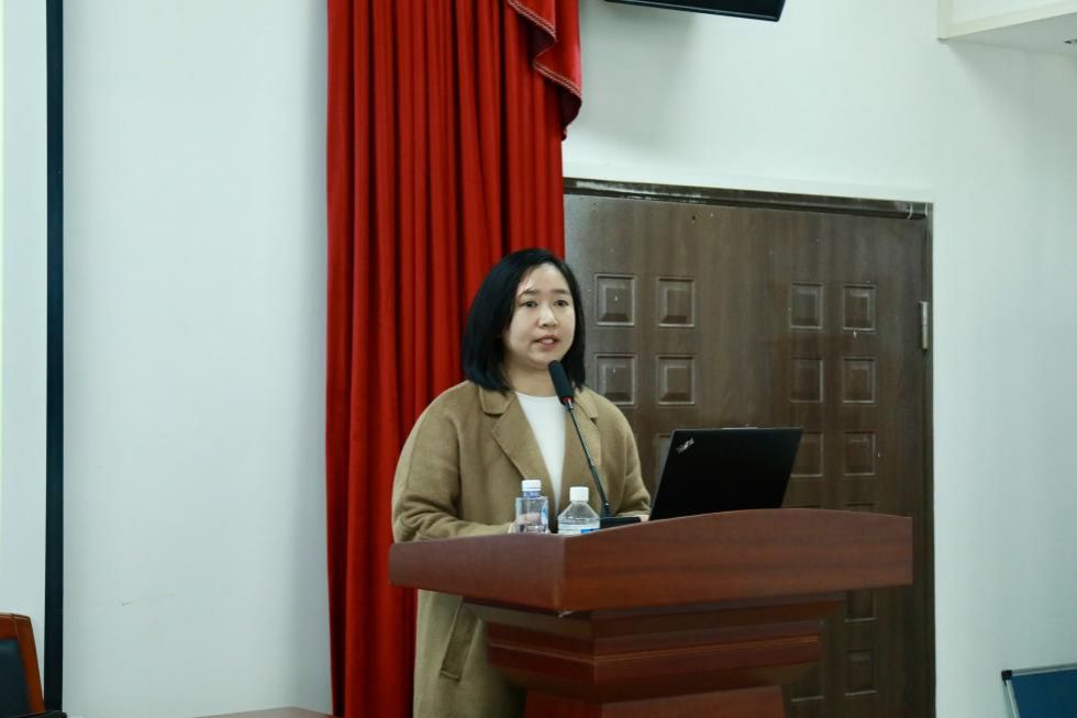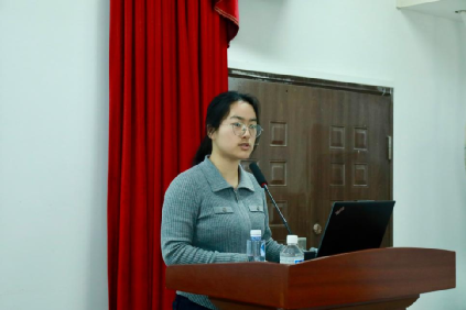 科研秘书马淼详细讲解了我校新实行的毕业论文盲评实施办法以及毕业学位申请的时间节点。她指出,毕业是就业的前提条件,希望大家能够重视毕业论文的撰写工作。