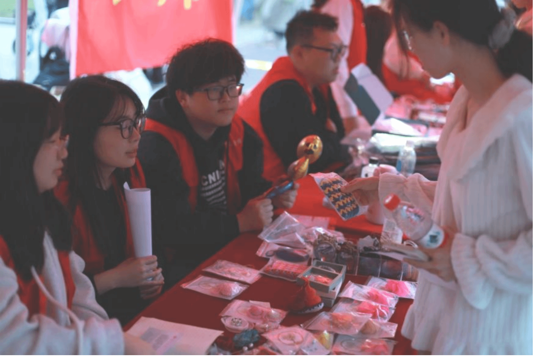 从下午两点起,志愿者们身着鲜亮醒目的红色马甲,热忱洋溢地向过往的行人介绍着义卖的物品以及义卖款项投入的公益项目详情。师生们或选购心仪物件,或与志愿者交流工艺故事。现场师生踊跃参与,让义卖物资一度紧俏,而志愿者的热情与笑容,不断吸引更多人参与其中。义卖活动现场交织着公益热情与文化共鸣,成为春日校园中一道温暖的风景线。