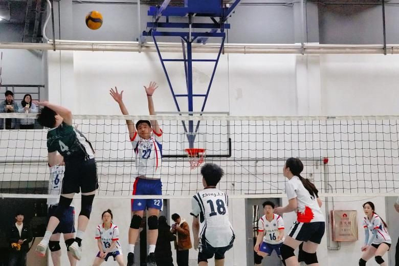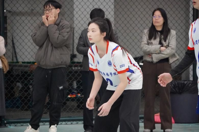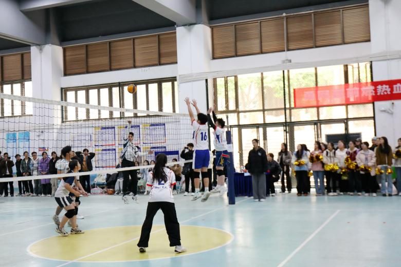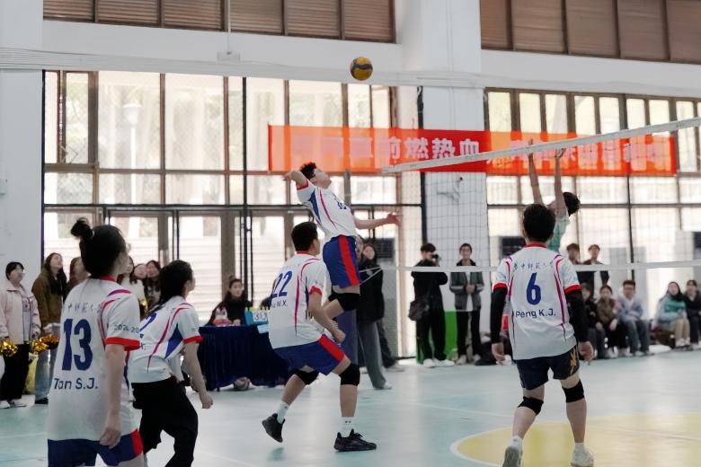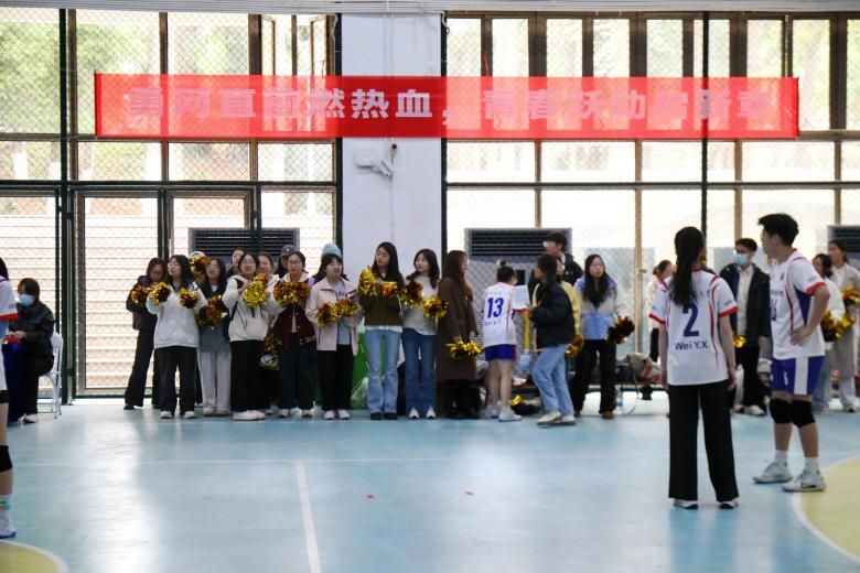 3月31日决赛现场,新闻传播学院与劲敌物理科学与技术学院上演“强强对话”。双方队员火力全开,发球、拦网、扣杀轮番上演,比分交替上升,战况扣人心弦。新闻传播学院在关键时刻展现出非凡的心理素质,多次以精彩配合化解危机。尽管最终憾负微小差距,但队员们永不言弃的拼搏精神赢得了全场观众的掌声与敬意。“他们很棒了,最后连追三分太帅了。”24级本科生饶佳怡激动道。