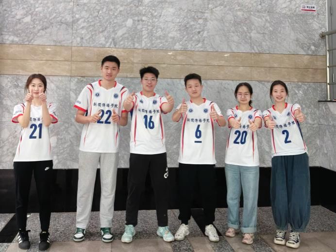赛场内外,新闻传播学院始终践行“友谊第一”的体育精神。赛后,队员们主动与对手击掌拥抱,彰显竞技风范;学院啦啦队则以嘹亮的助威口号点燃全场,成为赛场上一道亮丽的风景线,传递出新传人的团结与活力。