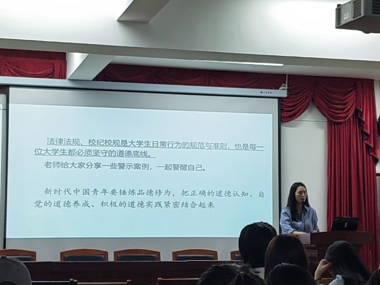 2022级、2024级辅导员李鸿以近期高校违纪案例为切入点,警示同学们严守校规校纪。她提到某高校学生通过VPN谋取非法利益、某学生为参与网络赌博骗取同学12万余元、某学生多次替他人代考等诸多违规违纪事件,这些行为不仅损害了个人的名誉和未来,也对学校和社会造成了负面影响,李老师明确指出,纪律是不可逾越的红线,每位同学都应当自觉维护良好的学风环境。