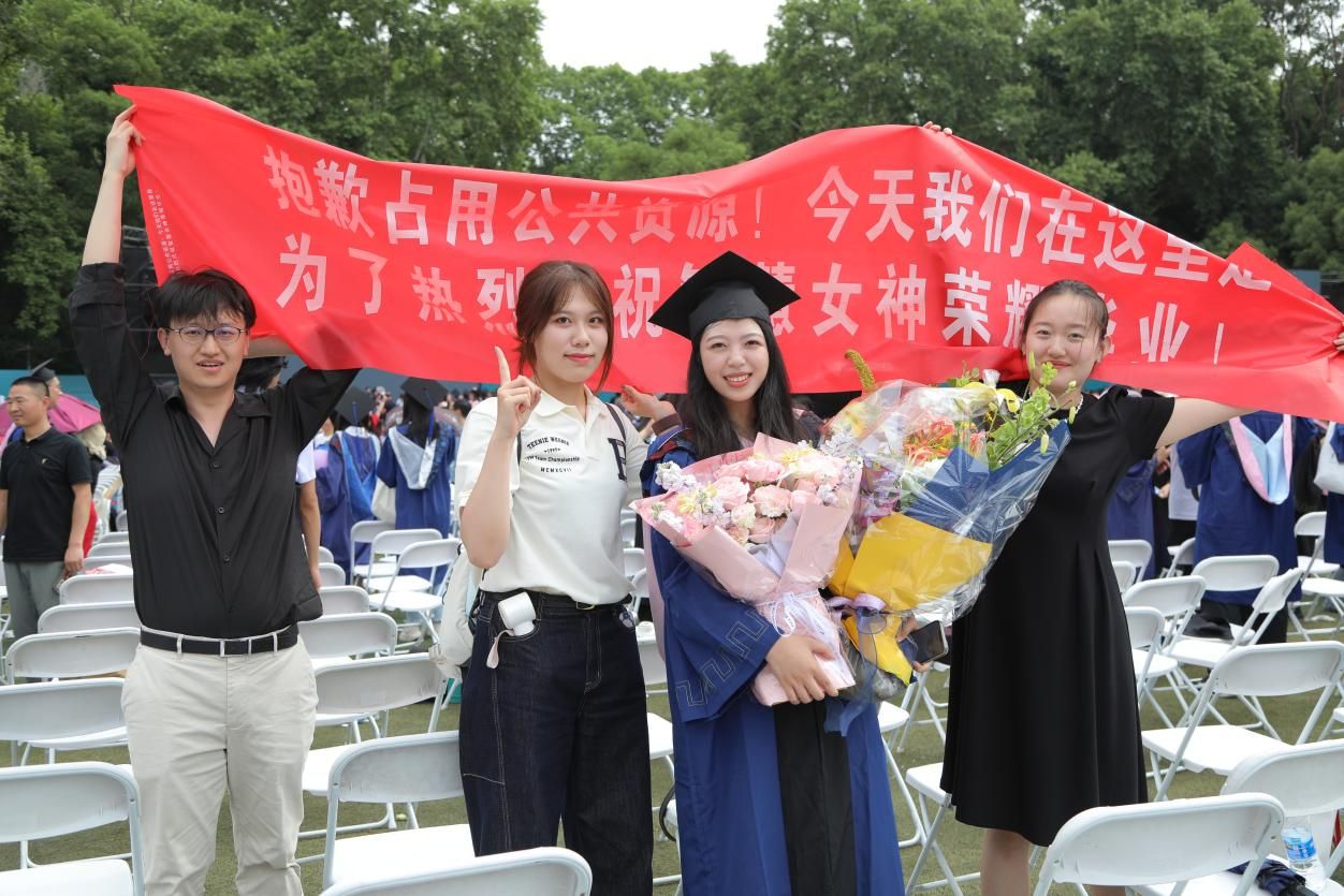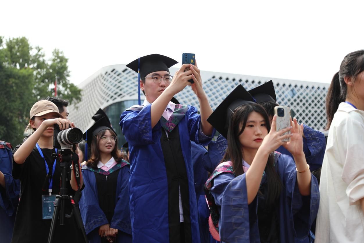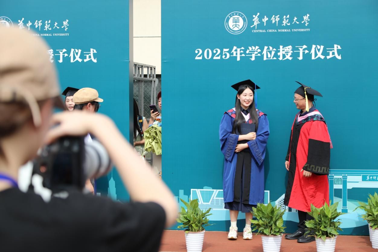 快门声中,毕业生们在学位台前留下珍贵的合影,笑容里既有收获的喜悦,也有离别的不舍。师生们纷纷在会场内外合影留念,定格青春最美好的瞬间,互道珍重与祝福。带着师长的嘱托、同窗的情谊和满载的知识行囊,华中师范大学新闻传播学院2025届毕业生将从桂子山扬帆起航,奔赴五湖四海,踏上新的征程。