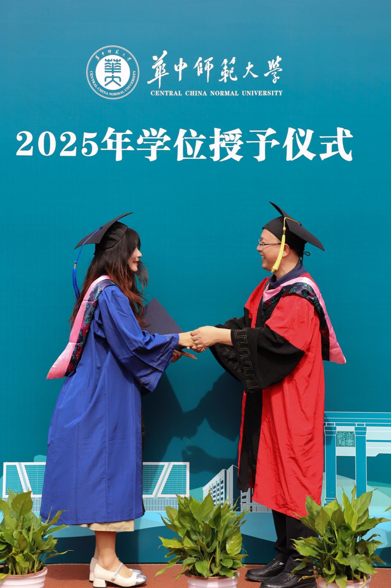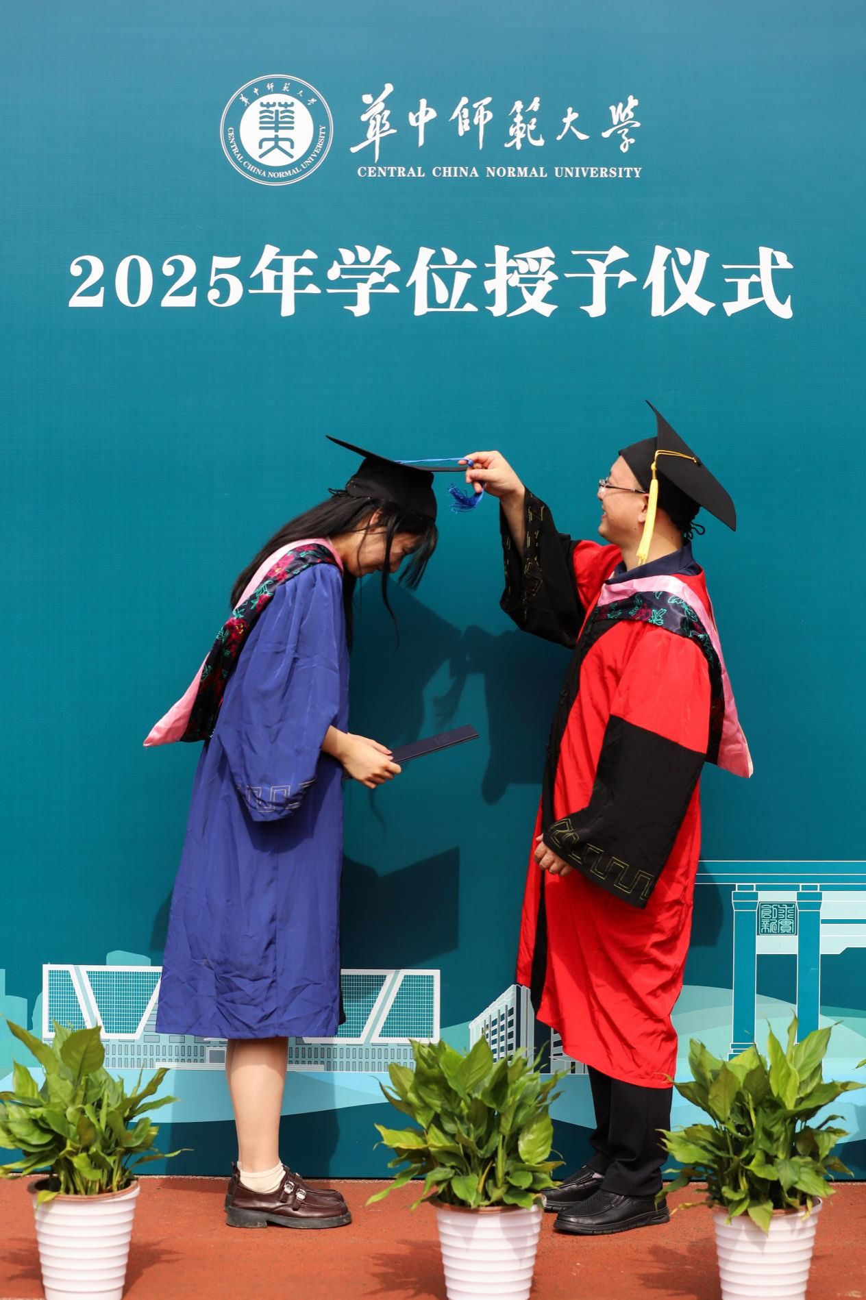 6月18日,华中师范大学2025年毕业典礼于佑铭操场圆满举行。六月的桂子山郁郁葱葱,佑铭体育场内庄重而温馨。华中师范大学新闻传播学院学院领导、教师代表、辅导员、2025届全体毕业生及部分家长齐聚一堂,共同见证这一庄重而温馨的时刻。万忆院长、陈科副院长为毕业生们拨穗、授予学位证书,并和毕业生们合影留念。