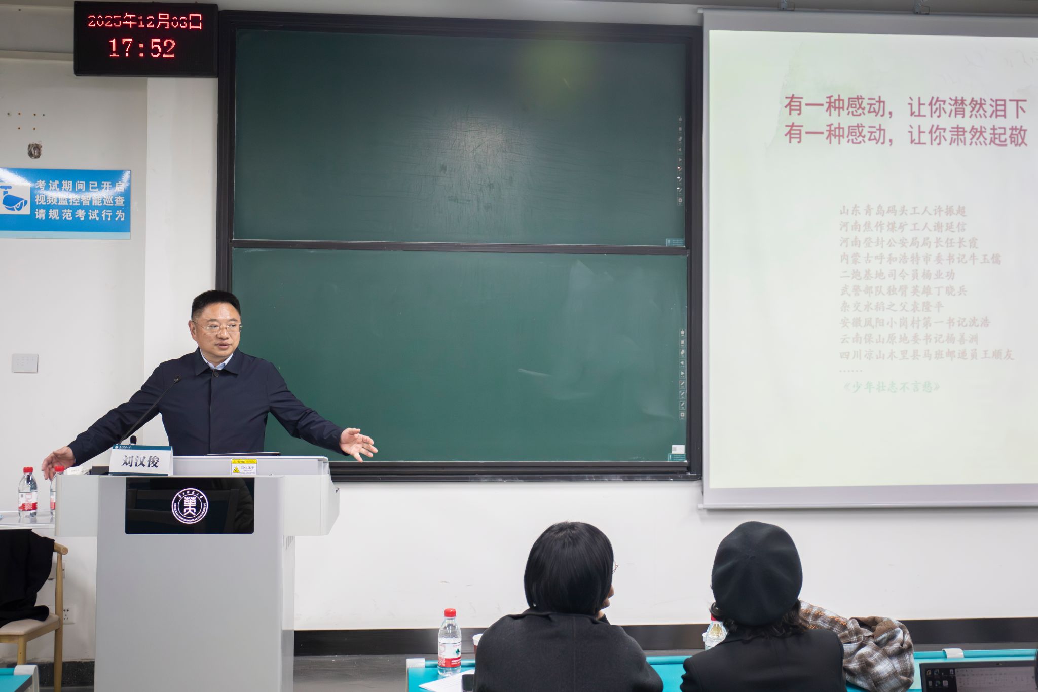 在“观天下事”这一维度,刘汉俊提出三个核心要求:一是“登高望远”,要关注时代大事与习近平总书记的重要思想,把握时代规律与发展趋势。他指出,习近平文化思想包含的创新观点和重要部署,是新闻舆论引导、对外传播等工作的根本遵循。二是“胸怀广阔”,要理解世界百年未有之大变局,立足国际国内双循环格局,拓宽全球视野。他以古丝绸之路、万里茶道为例,说明中华文明的开放性与包容性,鼓励学子跳出个人局限,关注国家发展与人类命运共同体建设。三要做到“目光敏锐”,要以慧眼观察社会细节,从具体现象中挖掘本质。他以记者采访挖掘公安英雄故事为例,呼吁学子要脚踏实地,在细微处锤炼新闻品格。