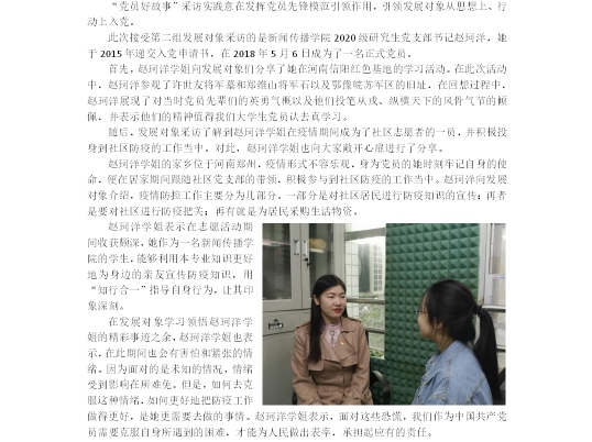 为了深入学习贯彻党的十九大精神和习近平新时代中国特色社会主义思想,进一步加强入党教育培训工作,提高发展党员质量,新闻传播学院党委、教育学院党委、物理科学与技术学院党委联合举办了第七期发展对象培训班,本期培训班由新闻传播学院党委承办,新闻传播学院2020级本科辅导员杜雨薇担任班主任。