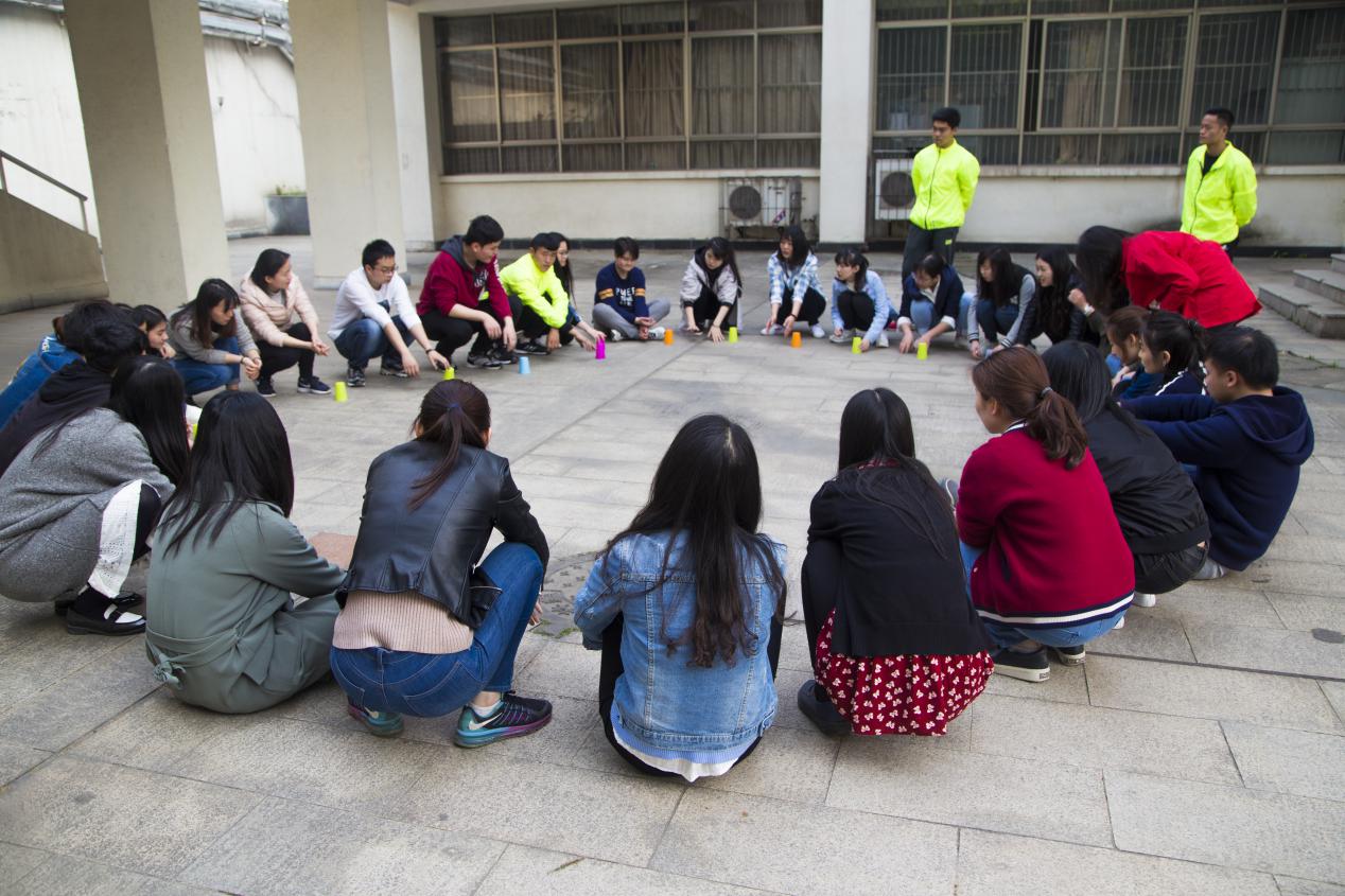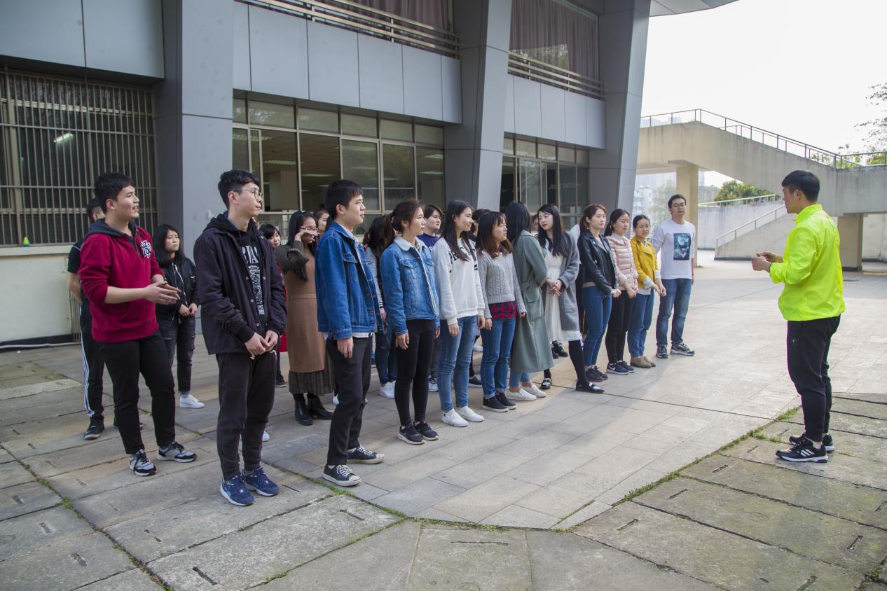 下午两点,伴随着温暖的春日,同学们在三位户外拓展教练的带领下,开始了此次充满欢乐的素质拓展活动。首先,教练带领同学们玩了几个调节气氛的小游戏,输的人上台表演,让原本有些拘谨的同学们一下子放开了束缚,开始全身心地投入本次活动中。