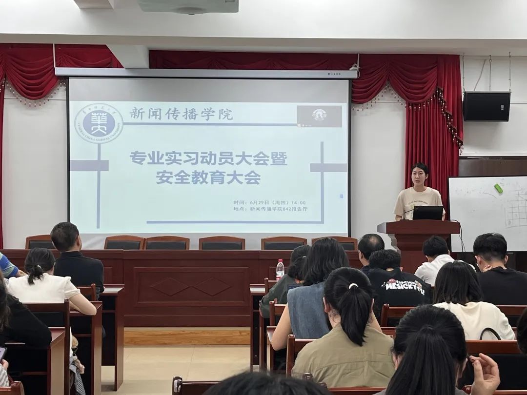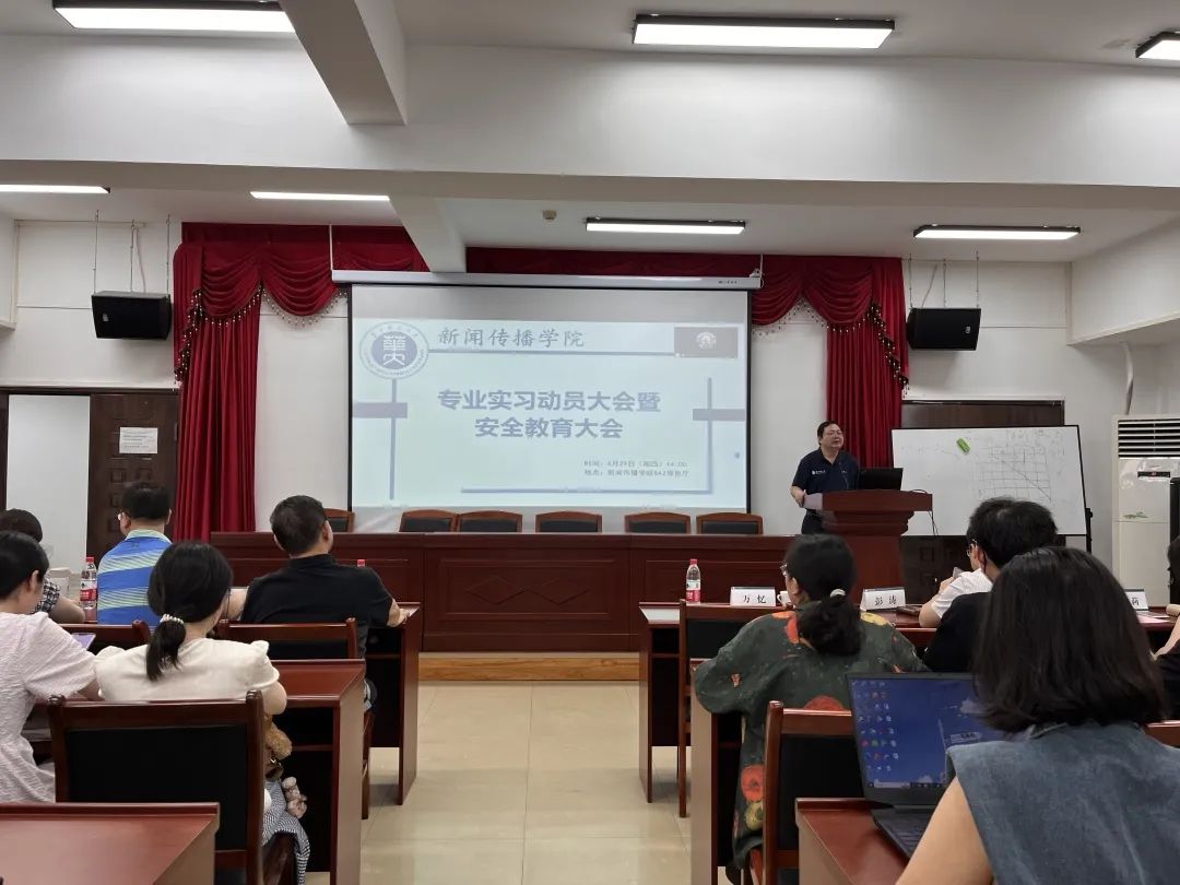 大会伊始,彭涛副院长发表动员讲话,进行实习工作部署并宣讲注意事项。他指出,此次专业实习受到学校与学院的高度重视,学院成立了由万忆院长担任组长的实习工作领导小组,希望同学们珍惜实习机会,有效完成专业实习的各项任务。他提醒学生要注意人身与财产安全,外出采访要报备行踪,要遵守实习纪律,要灵活处理实习中遇到的事情,遇到问题要及时与指导老师沟通。