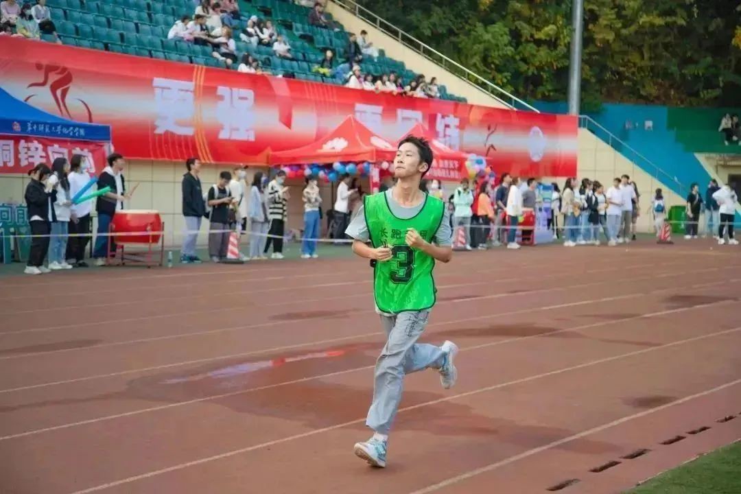 华新在线讯(见习记者 施希舸)11月11日上午,男子一百米比赛在佑铭体育场主席台前举行。我院2021级本科生魏照京参加比赛。