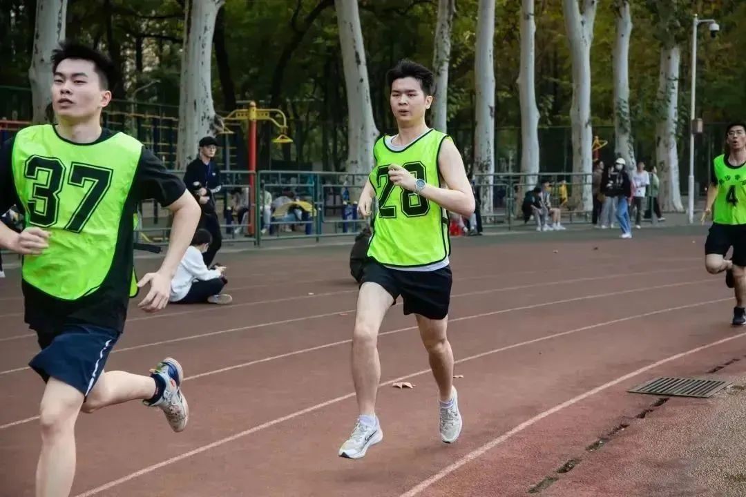 一声枪响,选手们纷纷冲出起跑线。最初,杨思辑按照自己的节奏奔跑着,并在最后100米时开始持续加速,直至冲过终点线。而在本次比赛中,和杨思辑一起奔跑的还有我院2022级未参赛的男生们,他们轮流高举院旗,为我院参赛选手加油助威。赛后,杨思辑回忆道:“听见场外老师和同学的加油声时,我就感觉有力气坚持下去了。”