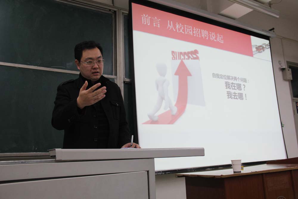 华新在线讯 (见习记者王璞 见习摄影刘怡莹)12月28日晚,我院95级校友王亮在8号楼8311教室为2014 级学生作了一场以“做一个好记者 从今天开始”为主题的讲座。院党委副书记夏守信及14级辅导员黄怡宁出席讲座。