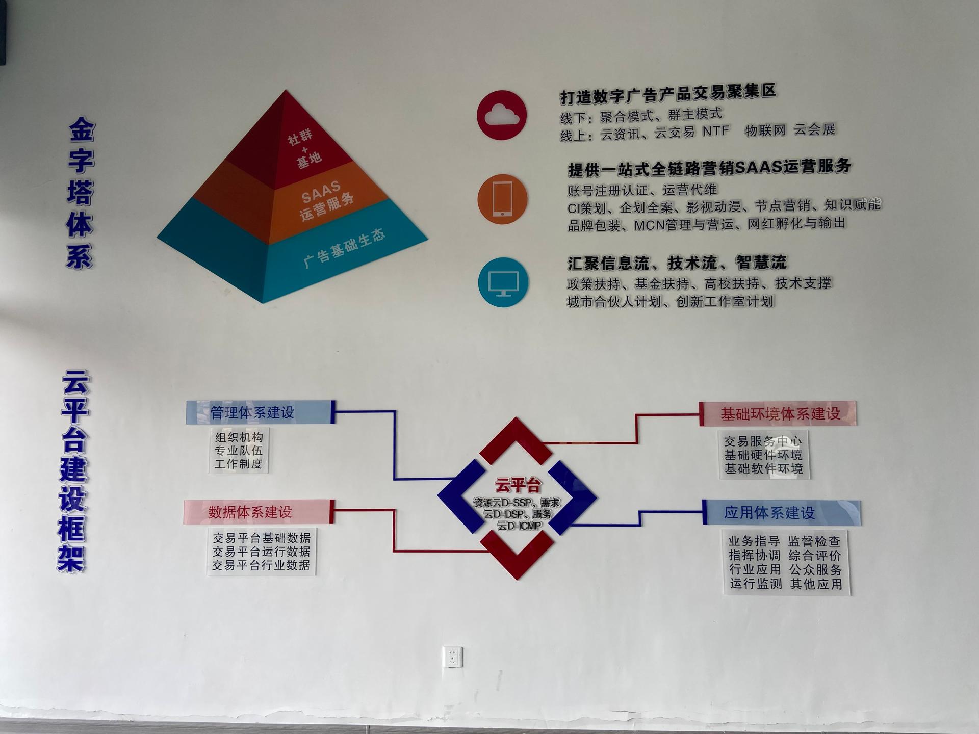 产业园区数字广告产品交易中心以云平台为建设重点,从资源、需求、服务三端,聚焦信息流、技术流、智慧流,提供一站式全链路营销运营服务,打造数字广告产品交易聚集区。