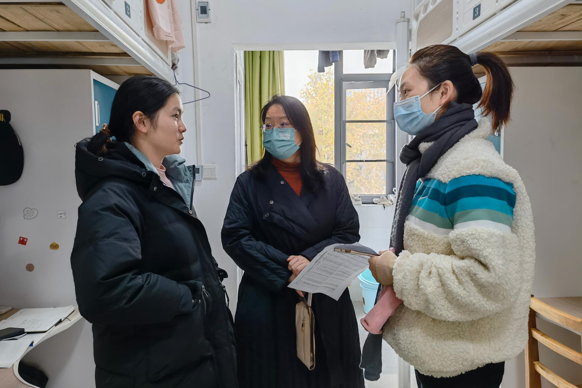 由于近期武汉疫情局势较为严重,学生在封校期间容易情绪波动,院领导前后赴元宝山5栋、东区14栋宿舍看望学生。