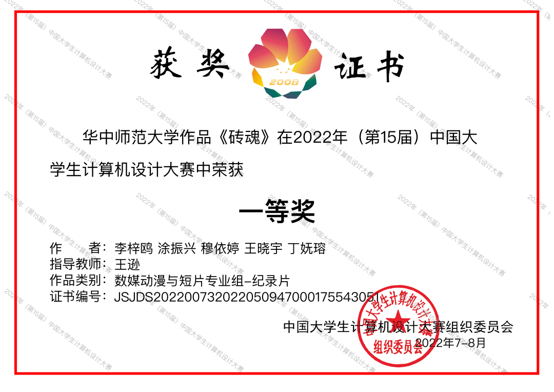 “下面公布一等奖作品……《砖魂》,华中师范大学。”主持人播报的话音刚落,备赛群里的每个人都默契地发出了一张一样的截图——