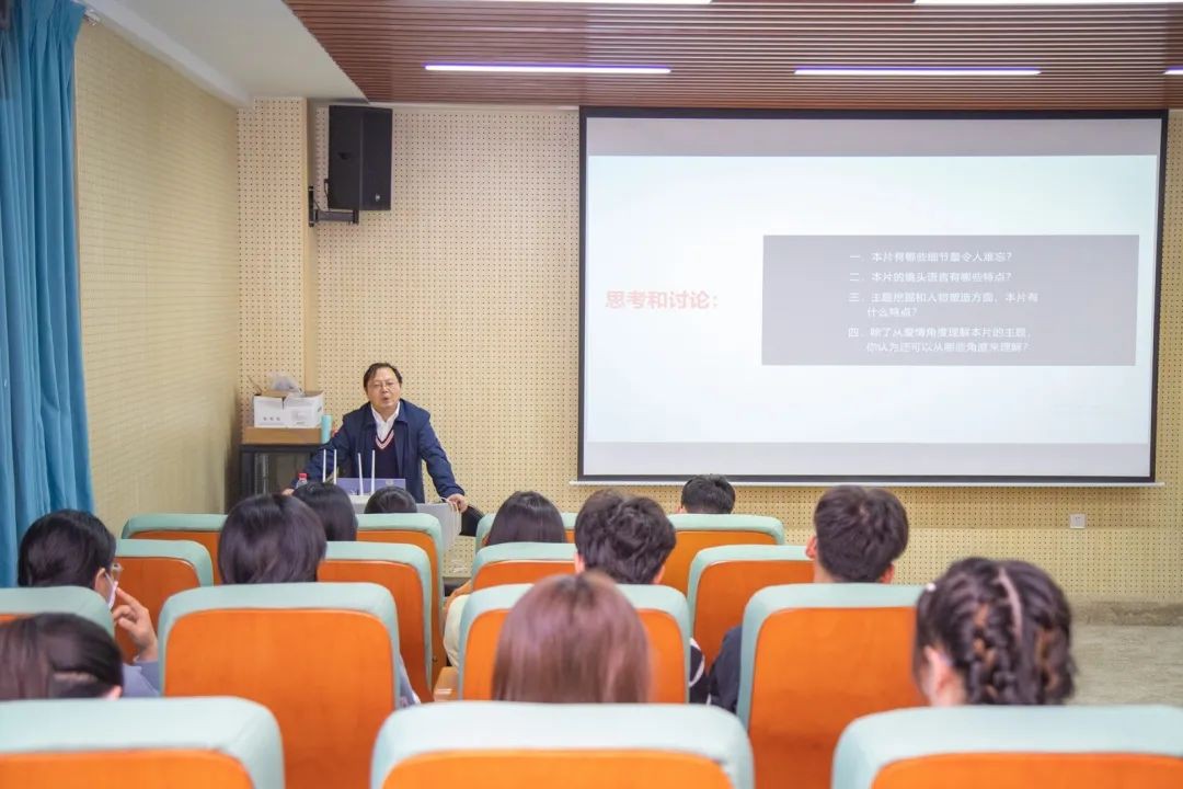 在放映开始前,彭涛教授从他在釜山和金基德导演的一面之缘谈起,向同学们介绍了这位影响非凡又颇受争议的创作鬼才,并抛出了关于表现细节、镜头语言、人物塑造和主题挖掘四个方面的思考问题。