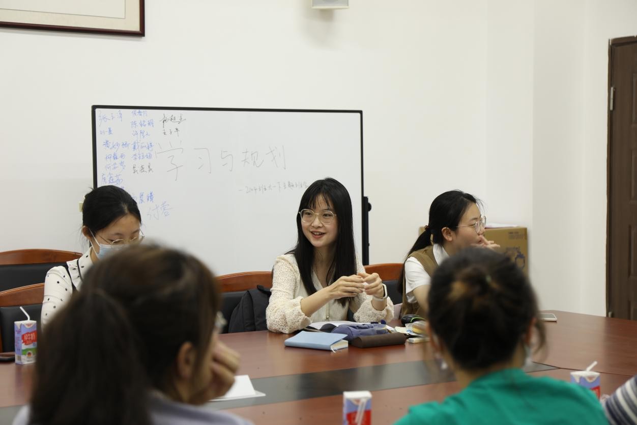 最后,陈琢用做引体向上式的努力总结了对待专业学习的态度。最后在培养专注力层面,陈琢强调应该遵循“目标感-计划-行动力”这一线索,形成自律的内驱力。陈琢向同学们展示了自己平常使用的计划本,上面细致地记录了她安排好的各个板块学习要求,同时她介绍了自己保持阅读与练笔的习惯。阅读既包括“学院派”式的专业阅读,也包括“野兽派”式的延展阅读。而练笔则是帮助陈琢随时记录下日常的突发奇想。在分享最后,陈琢表达了自己对新闻传播学专业的热爱,于陈琢而言,她的学习轴心与内核是“作为一个攀登者的求知欲,是不可战胜的旷达与勇敢”。