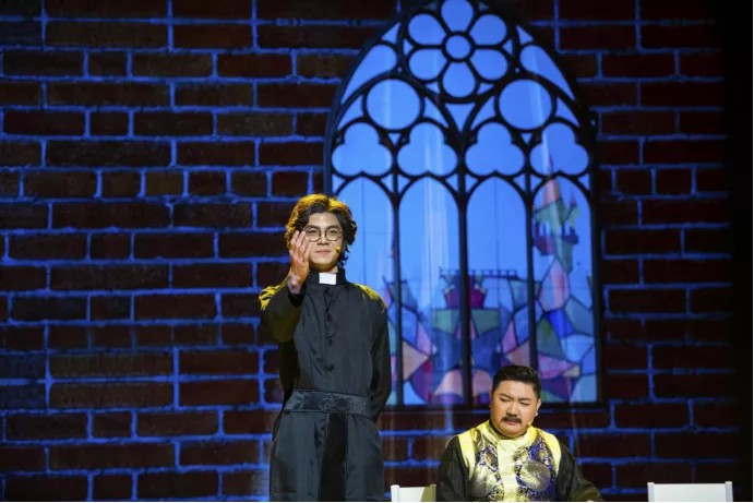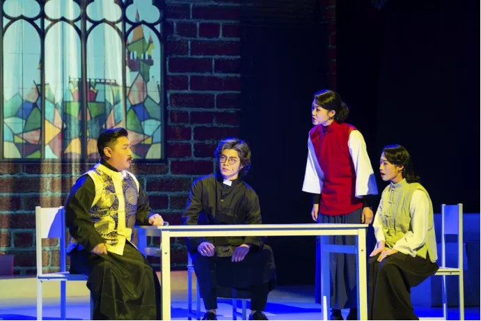 四周黑暗,只有黄乔站在唯一的光里。站在舞台上的那一刻,扮演陈时校长的他褪去了自己的印记,眼中只有先辈一生追求的办学事业。