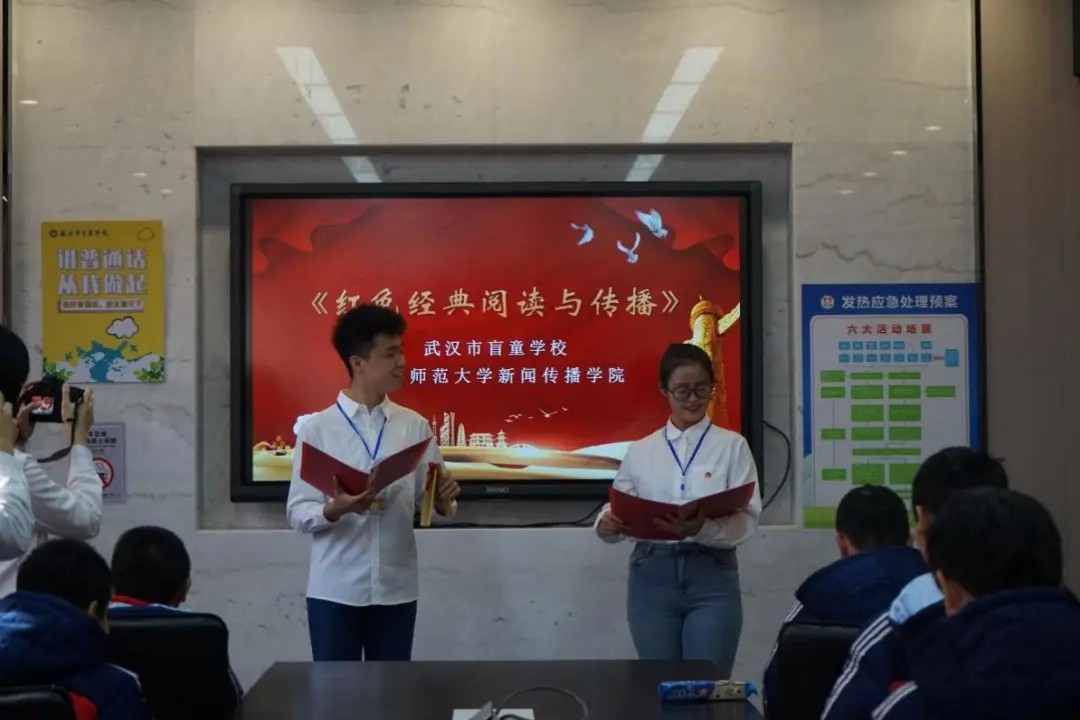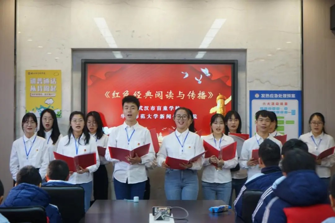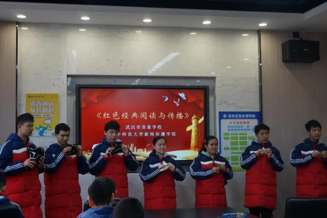 2021年12月3日是第30个国际残疾人日,华中师范大学新闻传播学院师生一行15人来到了武汉市盲童学校,“大手拉小手”一起展开了一次别开生面的红色经典实践课程。