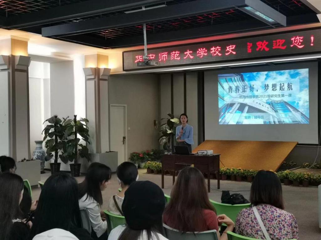 华新在线讯(通讯员 黄榕欣 周昶昕)9月18日9时30分,新闻传播学院研究生辅导员李鸿老师于校史馆报告厅召开新生第一课,新闻传播学院2021级全体研究生参与此次活动。