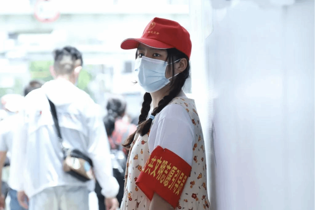 同学们负责的工作主要是提醒游客戴口罩、扫健康码登记,并维持现场秩序。看似简单的工作,在执行时却会有许多意外:年迈的游客不擅长使用手机、年幼的孩子不喜欢配戴口罩、因听不懂游客的方言而难以沟通……无法预料的情况在简单却乏味的工作中不时出现,同学们不得不时时都紧绷一根弦。