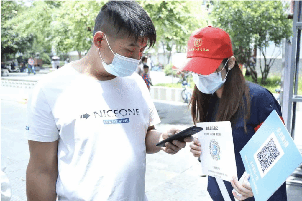 志愿者检查游客的健康码