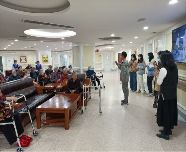今天的志愿服务活动结束后,2020级学硕的周晓丹同学感触颇多。她说:“特别开心能参加这次志愿活动,这种近距离地接触老人、陪伴老人的活动,我觉得是我们和他们双向治愈的过程。我们的工作主要是和老人们一起唱歌,与其说是我们带他们唱歌,不如说是他们带着我们唱歌,有位奶奶简直是中华小曲库,我们唱什么她都会,唱了将近一个小时她还意犹未尽,真是佩服奶奶的精气神儿!