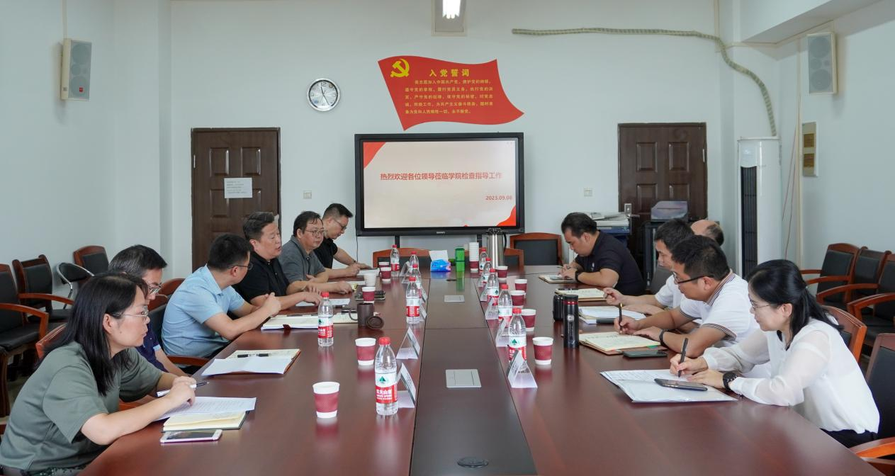 学院党委书记夏守信对李鸿飞副校长一行表示热烈欢迎,他从教师返校情况及假期思想动态、教师队伍建设情况、主题教育推进情况、意识形态工作情况等方面向检查小组作了工作汇报,并针对学院目前存在的困难和需要学校解决的问题向检查组提出了请求和建议。
