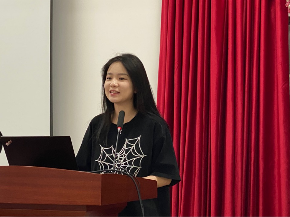 会议首先由新生代表,2023级新闻与传播硕士卢玉晓同学发言,她认为:“读研是追求知识、找寻自我的过程”,她呼吁同学们肩负时代使命,做新时代“提笔能写、对镜能讲、举机能拍、伏案能策”的全媒体人才。