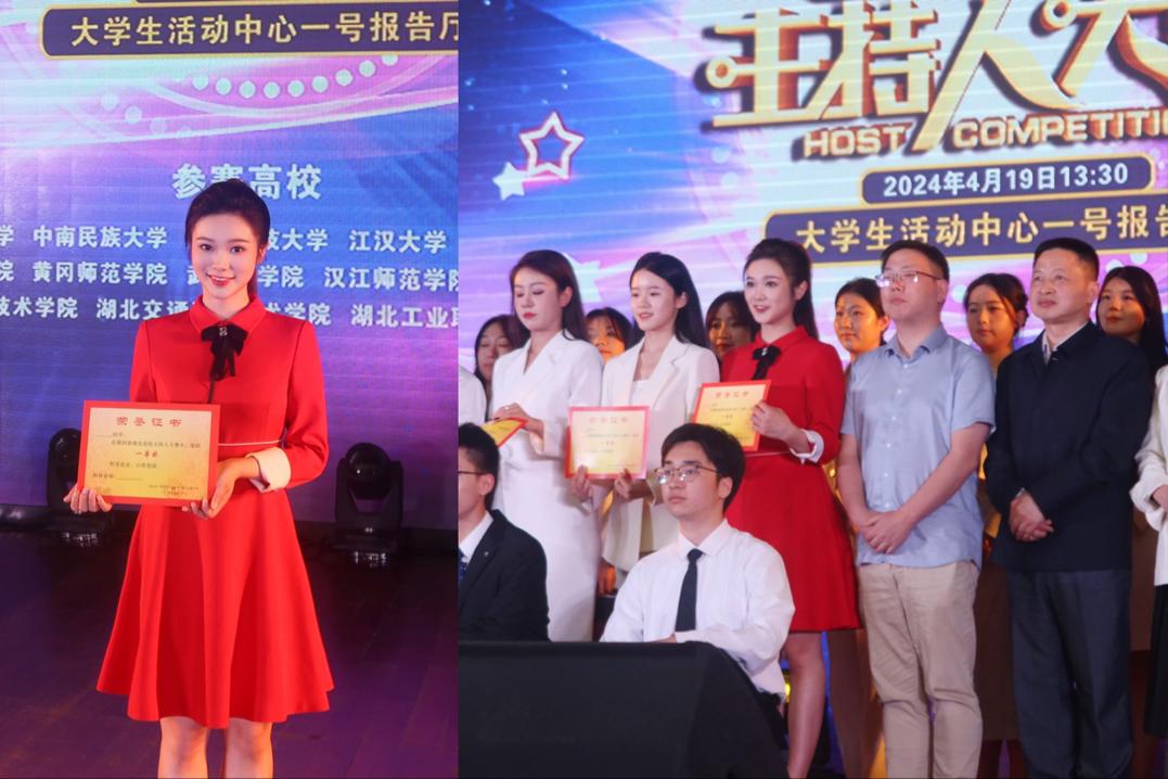2024年4月19日,第四届湖北高校主持人大赛在湖北经济学院隆重举行,本次大赛由湖北高校广播专业委员会与湖北经济学院联合举办,来自湖北省34所高校的同学同台竞技,现场评选出一等奖7名、二等奖11名、三等奖16名。我院2023级播音与主持专业刘天心荣获一等奖。