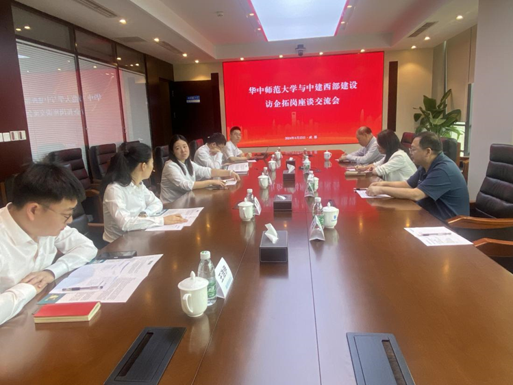 23日上午,学院访企拓岗分队在中建西部建设股份有限公司高级业务经理、我院校友杨倩介绍下,与公司人力资源部、办公室、党建工作部负责人开展座谈交流活动。人力资源部总经理熊竺介绍了公司历史,她表示公司作为世界五百强企业,也作为全球最大的投资建设集团,在“一带一路”倡议和布局上发挥了重要作用。公司以“绿色产业+和谐城市”为标准建设绿色城市,以“骁勇善战激情担当”为价值追求鼓舞全员士气,以“美丽中国永续未来”为愿景担当国企责任,努力实现从“中国制造”到“中国智造”转型升级。
