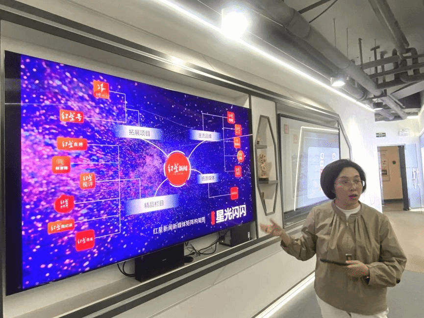 24日下午,访企拓岗分队走访成都传媒集团,在集团副总编王显钊率带领下,参观了成都商报(红星新闻)视频创作空间,观看了每经“雨燕智宣——AI短视频自动生成平台”演示,并听取了业务负责人相关介绍。