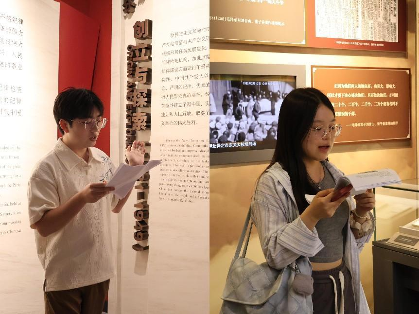 参观完中国共产党纪律建设历史陈列馆后,在华中师范大学新闻传播学院研究生第一党支部副书记邹智鹏同志的带领下,两支部全体党员共同重温了入党誓词。